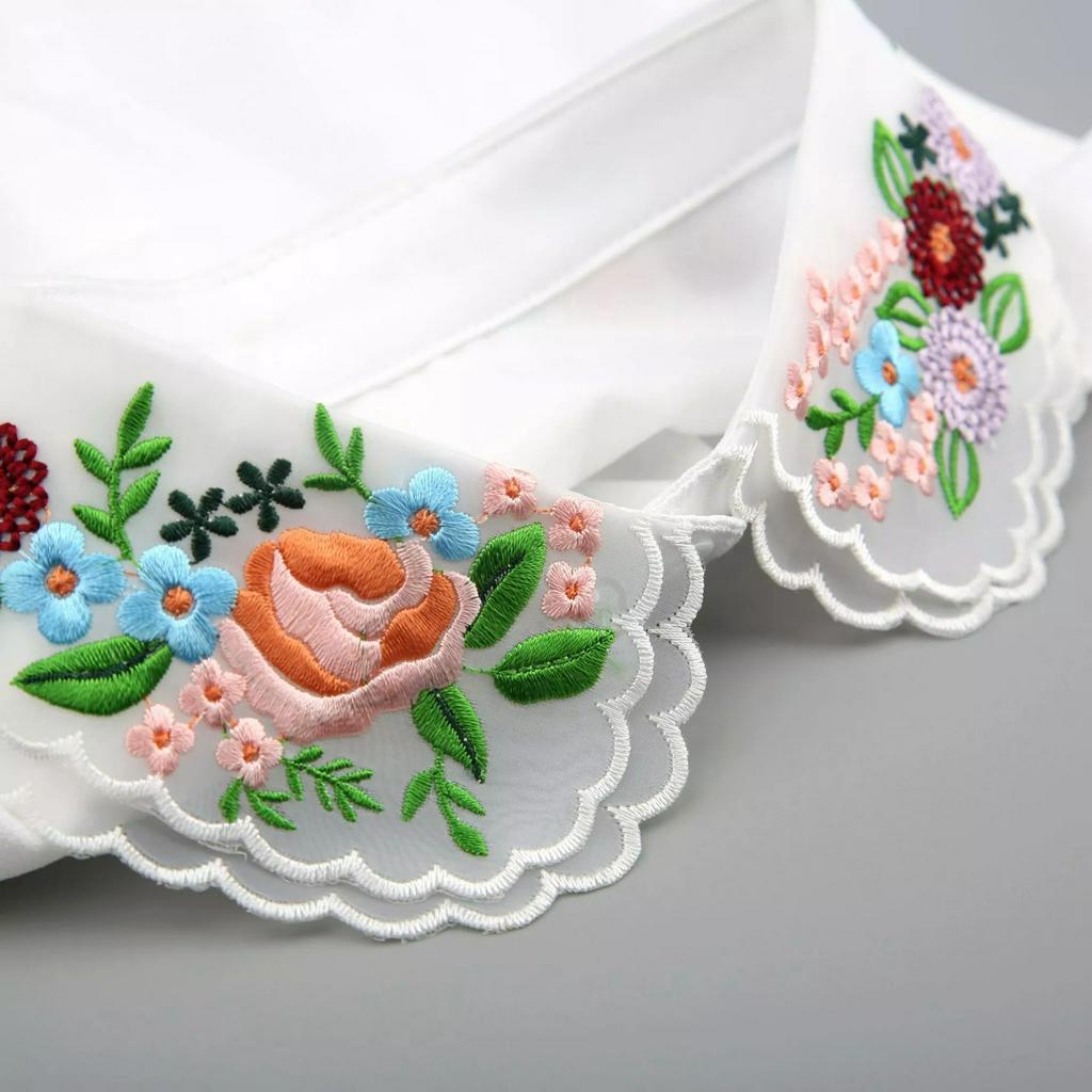 Moda Coreana Feminina Lapela Destacável Strass Flores Bordado Renda Chiffon Gola Falsa/Primavera Outono Vintage Cor Sóli