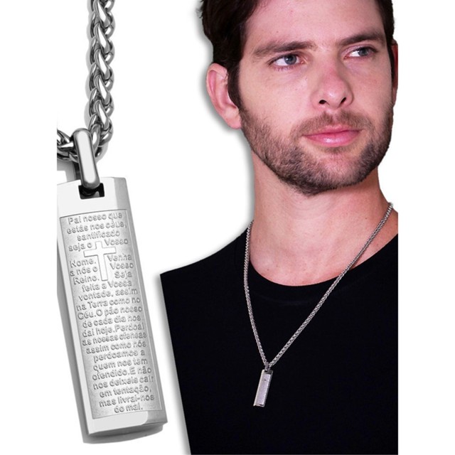 NÃO FICA PRETO.. NÃO OXIDA.. PODE MOLHAR! Corrente Pingente Placa Pai Nosso Aço Inox Prata Medidas: Informadas nas imagens! Material: Aço Inoxidável Os aços inox 316L não oxidam e não descascam por isso garantimos a sua qualidade. O produto pode ser usado por tempo indeterminado junto ao corpo e em lugares propícios que causam corrosão e oxidação. Além de tudo o aço inox 316L é antialérgico e não causa problemas a sua pele. Sua aparência, Seu Brilho são similares a produtos em ouro e prata causando um efeito semelhante ao ser usado. Apesar de todas as boas especificações do produto ser positivas não para por aqui, Seu custo benefício é incomparável.