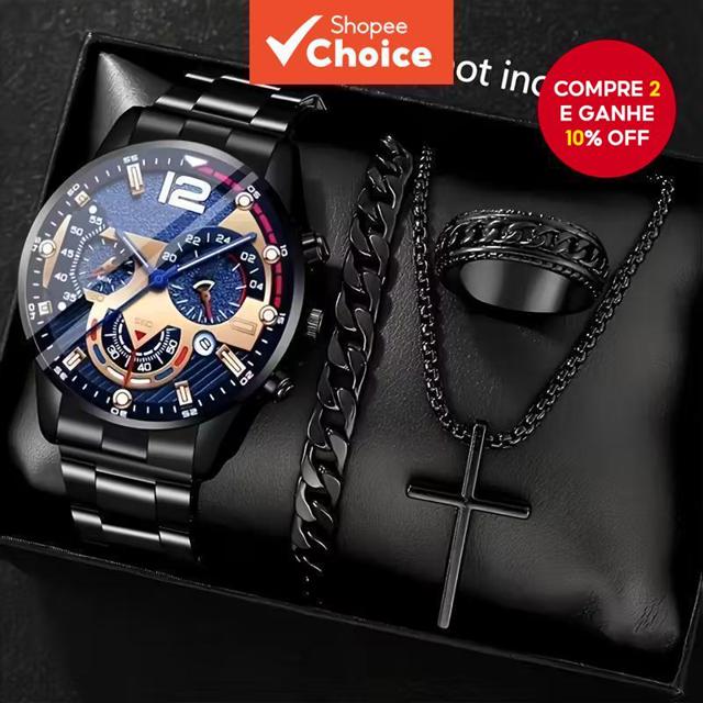 Moda De Luxo Negócios Relógio Quartzo Calendário Função Banda Aço Inoxidável Conjunto Jóias Masculino 4 Pçs Sem Caixa integra a oferta da Shopee Brasil na subcategoria Relógios Masculinos (de Relógios) por R$ 31,83 (14% de desconto sobre o preço original de R$ 37,01). Com avaliação de 4.6 de 5 estrelas e 113 unidades vendidas, este produto se destaca pelo excelente custo-benefício.