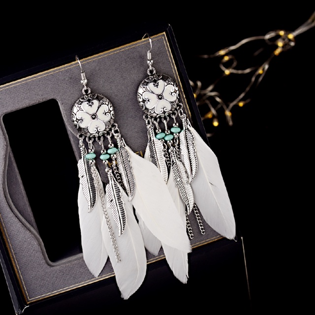 Moda Étnica Mulheres Tassel Dangle Brincos Longos Para As Mulheres Do Vintage Folha De Penas Brincos Cigana