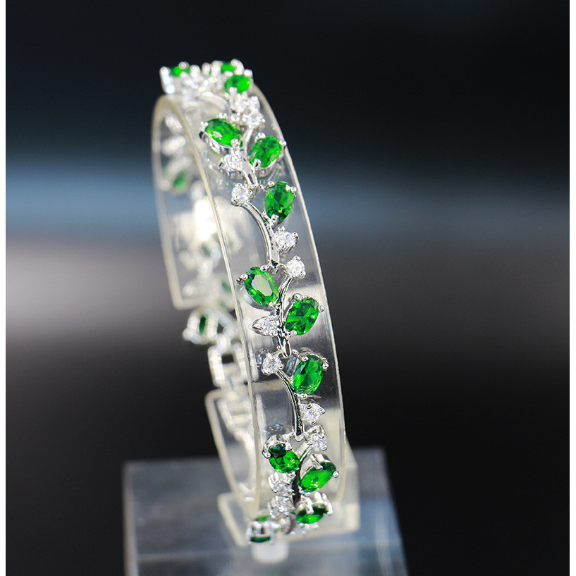 Moda Feminina Aço Inoxidável Titânio Zircão Verde Azul Pedra Preciosa Água Tijolo Flor Pulseira De Noivado Acessórios De