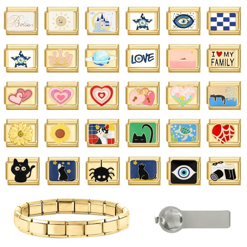 Moda Ouro Charme Italiano Links Caber 9mm Pulseira De Aço Inoxidável Jóias DIY Fazendo