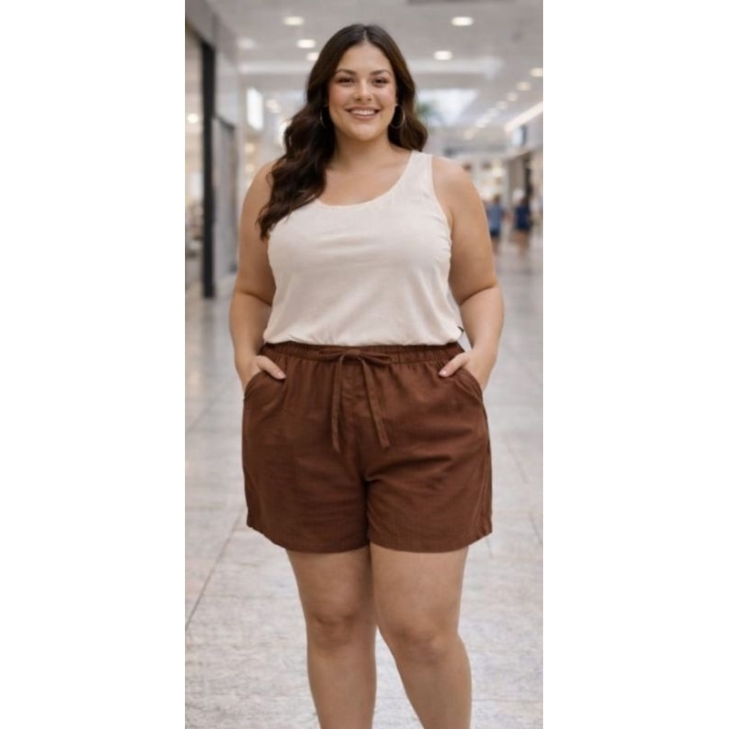 Short plus Size feminino confeccionado em tecido linho, ideal para quem busca conforto, leveza e estilo no dia a dia. Possui excelente caimento, toque macio e modelagem que valoriza o corpo, garantindo liberdade de movimento e bem-estar