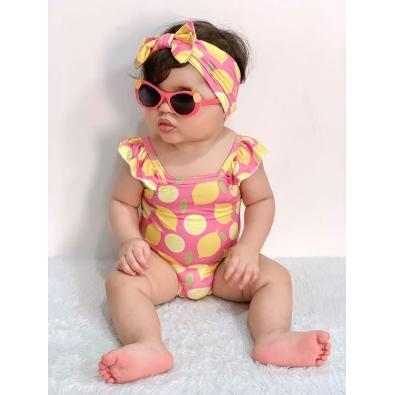 Moda Praia Bebê Infantil Menina Maiô + Faixa de Cabeça Uv50+