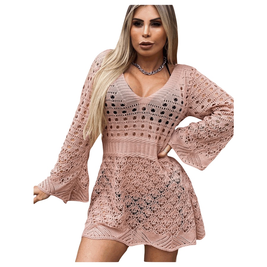 Moda Praia Trico Saida Rendada Manga Flare Estilo Bata