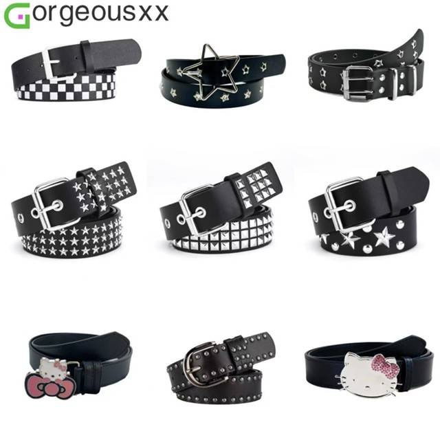Moda Punk Quadrado Rebite Cinto De Couro Para Mulheres Homens Y2K Oco Estrela Fivela Calças Vestindo Acessórios