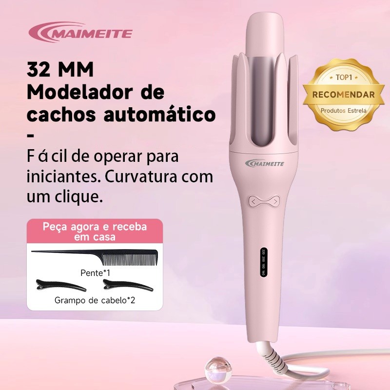 Modelador de Cachos Ferro 32mm Ondulação Automático Giratório Aquecimento Rápido Bivolt110V-220V