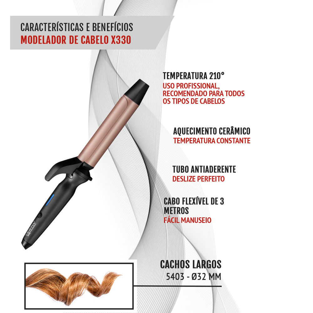 Modelador de Cachos X330 32mm X 130mm Vertix - Bivolt