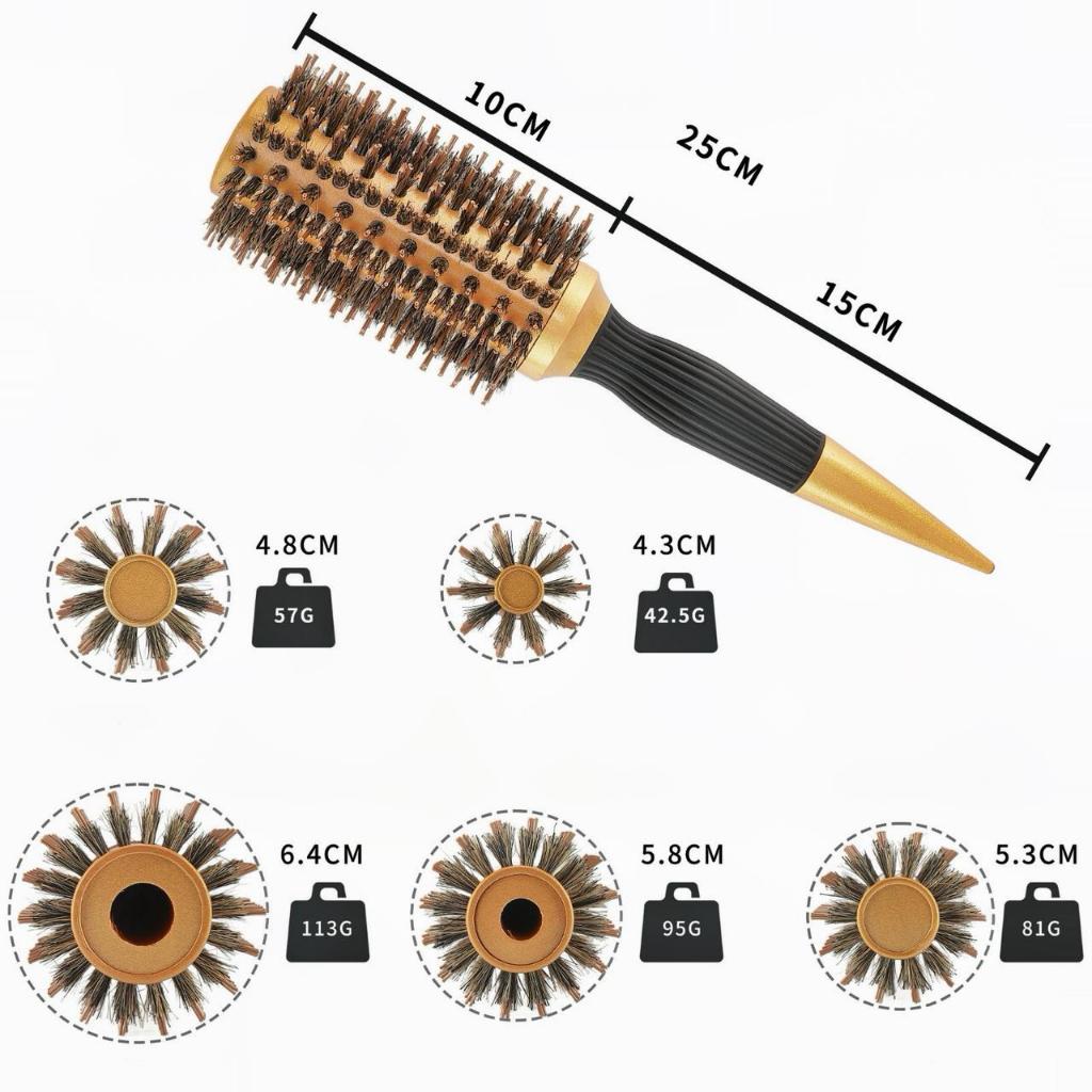 KIT 5 UNIDADES Escovas profissionais Cerdas de javali e nylon Borracha Estendida 【MODELO EVOLUÇÃO】 - Borracha Estendida Material: Cabo de madeira, Cerdas de Javali e nylon Comprimento: 25 cm Tamanho PP - Diâmetro:4,3 cm; Peso:46g Tamanho P - Diâmetro:4,8 cm; Peso:58g Tamanho M - Diâmetro:5,3 cm; Peso:73g Tamanho G - Diâmetro:5,8 cm; Peso:102g Tamanho GG - Diâmetro:6.3 cm; Peso:112g -Para todos os tipos de Ideal para secagem e alisamento de cabelos ondulados e cacheados. Reduz volume, seca, suaviza, formas e acabamentos. Desliza facilmente ao longo do comprimento dos fios. Excelente para acabamento de penteados e penteados. -Suporte Técnico IMPORTANTE: Certifique-se de que sua escova tenha uma vida útil mais longa Para manter sua escova, é melhor manter uma distância mínima de 7-10 centímetros do secador.