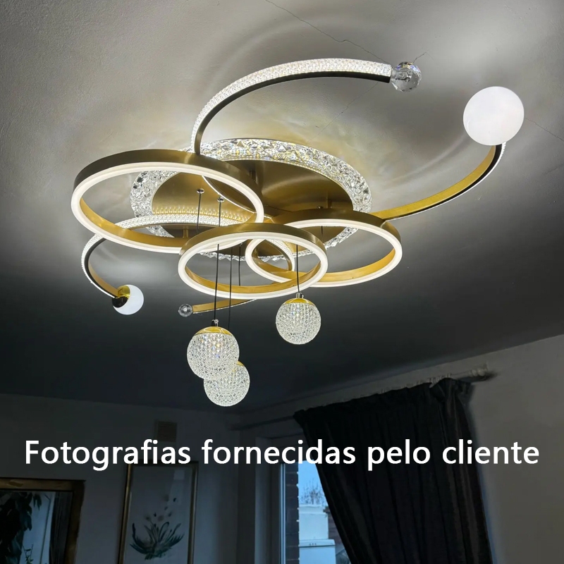 Este lustre de teto é projetado na forma de círculos cruzados, oferecendo uma estética única. Ele é controlado por um interruptor mecânico para facilitar o uso. Feito de ferro e acrílico, a lâmpada combina durabilidade e elegância. Seja instalado na sala de estar, sala de jantar, quarto ou qualquer outro ambiente, este lustre cria um efeito decorativo exclusivo. Graças à sua ampla gama de instalação, ele oferece mais opções para você exibir seu estilo de iluminação personalizado em diferentes locais. Deixe este lustre de teto ser o ponto focal da sua casa ou escritório e crie uma atmosfera de iluminação quente e confortável. Tipo: lustre de teto Forma da lâmpada: lustre de teto Área de irradiação:10-15 metros quadrados Material: ferro + acrílico Espaço: sala de estar, sala de jantar, quarto, varanda Tipo de fonte de luz: lâmpada LED Tensão: 110-220 volts Estilo: simples e moderno