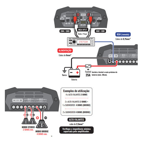 O Módulo Amplificador Automotivo Stetsom HL 400.4 é a escolha perfeita para quem deseja qualidade de som, potência e eficiência em um único equipamento. Projetado para entregar áudio limpo e forte em diferentes frequências, ele oferece 400W de potência distribuídos em 4 canais, permitindo alimentar múltiplos alto-falantes com equilíbrio e desempenho. Sua construção robusta garante durabilidade e excelente dissipação de calor, evitando superaquecimento mesmo em longos períodos de uso. Além disso, conta com tecnologia de baixo consumo de energia, otimizando a performance do sistema de som automotivo sem sobrecarregar a bateria do veículo. O design compacto e moderno na cor preta facilita a instalação em diferentes espaços, adaptando-se facilmente a diversos projetos de som automotivo. O HL 400.4 da Stetsom é ideal tanto para médios e graves quanto para drivers e tweeters, sendo uma solução versátil para quem busca potência aliada à fidelidade sonora. É a escolha certa para transformar a experiência de áudio dentro do carro, entregando qualidade profissional em qualquer estilo musical. Informações importantes do Módulo Amplificador Stetsom HL 400.4: Marca: Stetsom Modelo: HL 400.4 Cor: Preto Potência: 400W RMS Quantidade de canais: 4 canais Impedância mínima: 2 ohms Aplicação: Automotivo Tecnologia: Alta fidelidade, baixo consumo Benefícios: Potência equilibrada, som limpo e versatilidade para diferentes projetos