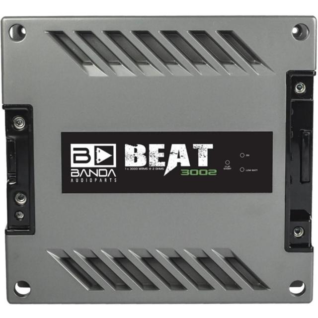 A Linha BEAT é a mais nova linha compacta de amplificadores da BANDA. Combina características de qualidade com a eficiência de Classe D. Com 1 canal de 3000 Wrms @ 2 Ohms, o BEAT 3002 se destaca na potência que fornece. A BANDA AUDIOPARTS criou o BEAT para pequenos e médios projetos de som. Graças ao seu alcance FULL-RANGE de resposta de frequência, o BEAT se encaixa em qualquer projeto com: Subwoofers, Woofers, Médio-Grave, Cornetas ou Super Tweeters. Possui alta eficiência, qualidade de áudio com mínimo de distorção (abaixo de 1%), baixo consumo de corrente em sinal musical e design compacto que cabe em qualquer espaço do seu projeto. Especificações Técnicas • Potência Máxima 14,4v @ 2 Ohms 3500 WRMS • Potência Máxima 14,4v @ 4 Ohms 2600 WRMS • Potência Máxima 12,6v @ 2 Ohms 3000 WRMS • Potência Máxima 12,6v @ 4 Ohms 2150 WRMS • Eficiência @ 4 Ohms 81% • Eficiência @ 2 Ohms 72% • Tensão de Entrada 9 – 15V • Impedância de Entrada 100K Ohms • THD+N <1% • Sensibilidade de Entrada 135mV – 4V • Relação Sinal Ruído 80dB • Resposta em Frequência 20 a 20kHz (-3dBs) • HPF (Subsônico) 20 a 80Hz @ 12dB/oitava Linkwitz-Riley • LPF (Crossover) 80 a 20kHz @ 12dB/oitava Linkwitz-Riley • Fusível Recomendado 150 A • Corrente de Repouso 1,5 A • Corrente Máxima (sinal senoidal) 360 A • Corrente Máxima (sinal musical) 180 A • Cabos de Alimentação (mín. recomendado) 21mm / 4 AWG • Cabos de Saída (mín. recomendado) 2 x 4mm / 2 x 11 AWG • Altura (mm) 54 • Largura (mm) 209 • Profundidade (mm) 243 • Peso (Kg) 3,5