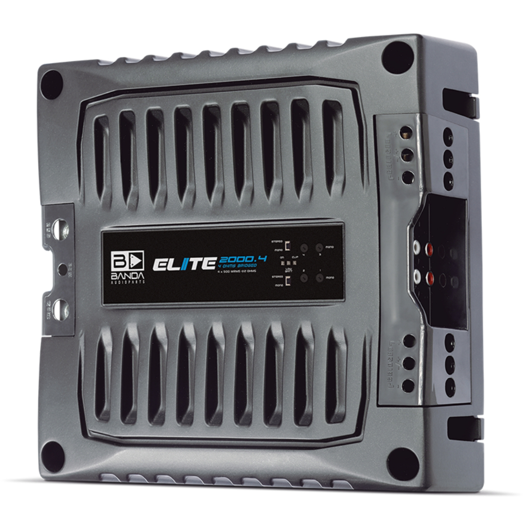 Com potentes 2000 Watts RMS em 4 canais e impedância de 1 Ohms por canal, os amplificadores da nova linha ELITE são muito versáteis, possibilitando diversos tipos de instalação com um único amplificador. Graças ao seu alcance FULL-RANGE de resposta de frequência, o ELITE se encaixa em qualquer projeto com: Subwoofers, Woofers, Médio-Grave, Cornetas ou Super Tweeters, sendo possível também, fazer ligações em 4 canais, quando utilizado em conexões Bridge. Com o ELITE 2000.4 é possível conectar um sistema de som de médio porte por completo, desfrutando da qualidade de áudio já consagrada pela BANDA AUDIOPARTS além de e um baixo consumo. Especificações Técnicas • Potência: 2.000 Wrms @ 12,6volts • Impedância: 2 Ohms • Resposta de frequência: 20 – 25khz • Eficiência: 82% • Canais: 4 • Cabos de Alimentação (min. recomendado) 21mm / 5 AWG • Peso: 3,7kg • Altura: 63mm • Largura: 225mm • Profundidade: 236mm