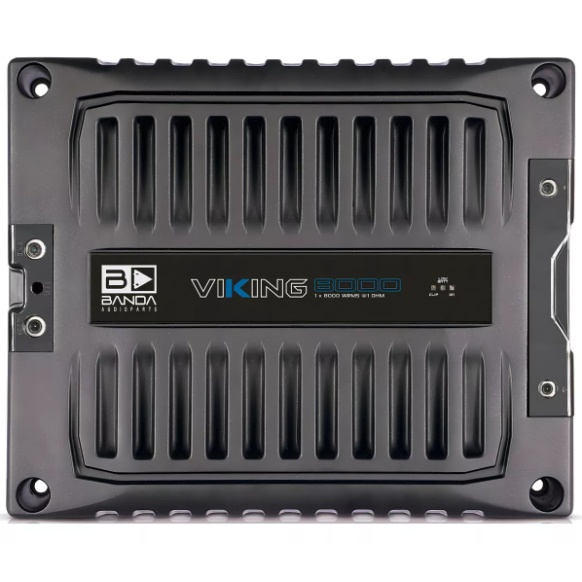 MÓDULO AMPLIFICADOR VIKING 8000 @ 2 OHMS A Linha VIKING é destinada para quem realmente busca um som potente. Nessa linha temos alguns modelos que são destaques em grandes campeonatos a nível mundial. O Viking 8000 oferece 8000Wrms em 1 canal à 2 Ohms, usado para grandes projetos por ser um amplificador de alto desempenho, possuí uma resposta de frequência de (16Hz - 7kHz) e pode ser utilizado para tocar diversos tipos de alto falantes. Ele também possuí um chassi em 100% alumínio que oferece uma melhor dissipação de calor, resultando em um baixo consumo de bateria e um ótimo rendimento. Especificações Técnicas - Classe de operação: Classe D - Potência Máxima 12,6v @ 2 Ohms: 8000 WRMS - Potência Máxima 12,6v @ 4 Ohms: 5100 WRMS - Potência Máxima 14,4v @ 2 Ohms: 9500 WRMS - Potência Máxima 14,4v @ 4 Ohms: 6800 WRMS - Eficiência @ 4 Ohms: 88% - Eficiência @ 2 Ohms: 79% - Tensão de Entrada: 9 - 15V - Impedância de Entrada: 22K Ohms - Distorção Harmônica Total + Ruído: ~1% - Sensibilidade de Entrada: 200mV a 8V - Relação Sinal Ruído: 80dBs - Resposta em Frequência: 16 a 7kHz (-3dBs) - HPF (Subsônico): 16 - 120Hz @ 12dB/oitava Linkwitz-Riley - LPF (Crossover): 50 - 7kHz @ 12dB/oitava Linkwitz-Riley - Bass Boost (Variável): 30 - 80hz em até 12dB - Fusível Recomendado: 2 x 225 A - Corrente de Repouso: ~3A - Corrente Máxima (sinal musical): 400A - Corrente Senoidal: 850A - Cabos de Alimentação (mín. recomendado): 70mm / 0 AWG - Cabos de Saída (mín. recomendado): 2 x 6mm / 2 x 3 AWG - Controle de ganho - Entrada de sinal em modo diferencial - Ventilação forçada através de micro ventiladores - Peso (Kg): 6,3 - Altura (mm): 73 - Largura (mm): 256 - Profundidade (mm): 317 OBSERVAÇÕES - Imagens Meramente Ilustrativas - Recomendamos que a instalação seja feita por um profissional capacitado. Não nos responsabilizamos por má instalação ou uso indevido do produto.