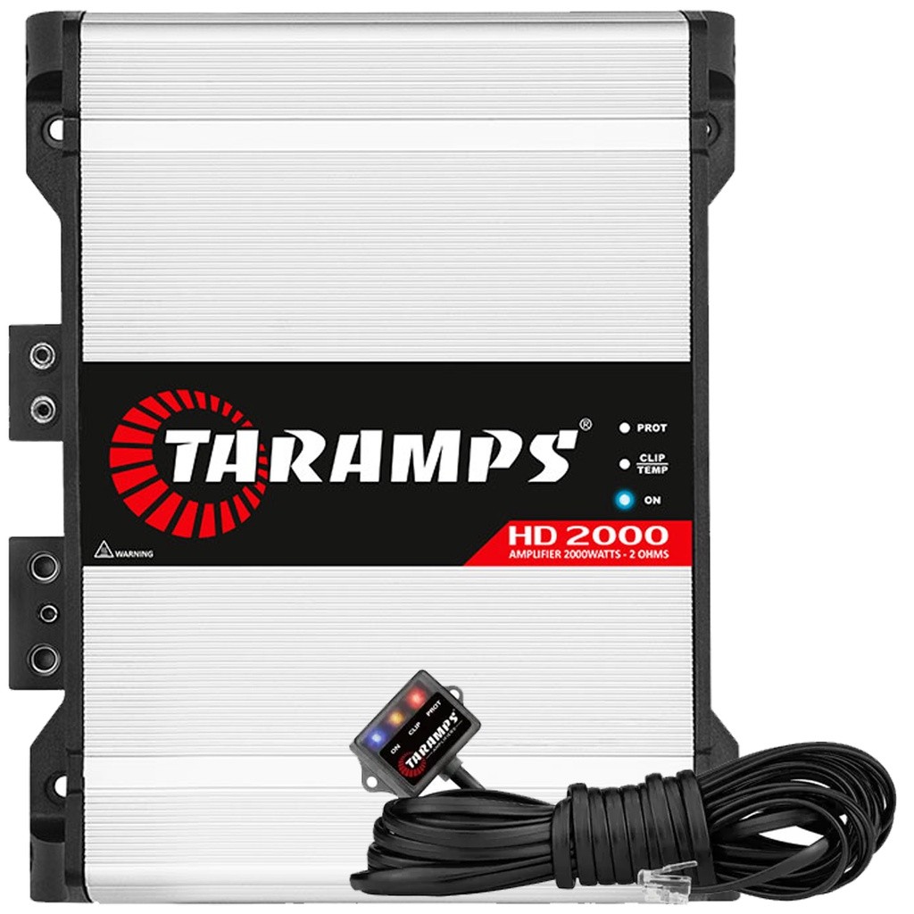 Por que adquirir este produto com a Loja do Som e Acessórios? • Todos os produtos à pronta entrega • Produtos de qualidade garantida • Equipe de atendimento especializada • Envio em 24 horas após o pagamento • Compra com segurança e credibilidade • No mercado há mais de 10 anos • Produtos com garantia e nota fiscal Apresentamos o HD2000, um amplificador com a tradição e qualidade de uma das mais consagradas linhas da Taramps. Ele é perfeito para você que busca potência e versatilidade. Mas qual é a potência dele? São 2000 WRMS à 12.6V DC (Potência nominal com sinal senoidal de 60Hz a 1KHz e THD <= 1% na saída). Beleza! Mas porque ele é versátil? Para começar, ele está disponível na versão de 2 Ohms — Ele tem uma ampla resposta de frequência, o que permite usá-lo para tocar: Subowoofers, alto-falantes de grave, de médio grave, de médio, 6×9”, full ranges, drivers fenólicos, drivers titânio, super tweeters, entre muitos outros. Isso significa que dá pra usar em som automotivo interno, em som de porta malas, em paredões, em caixas trio, em caixas bob, etc. Fique a vontade e use sua criatividade para explorar o máximo desde produto incrível. Além disso, ele tem ajuste de Level, Crossover (HPF e LPF) e Bass boost para reforçar o grave. Tudo isso para deixar seu som regulado e com a batida perfeita. E não poderia faltar os leds indicadores On, Clip e proteção, os quais são replicados pelo monitor de led M1, um acessório exclusivo que vai de brinde. Assim fica fácil ver tudo que acontece com seu amplificador. Viva uma experiência sonora fantástica, com o melhor custo benefício! • Classe de Operação: Classe D • Quantidade de Canais: 01 • [POTÊNCIA MÁXIMA] @12,6 VDC - 2 Ohms: 2000W RMS @12,6 VDC - 4 Ohms: 1400 Watts RMS @12,6 VDC - 8 Ohms: 515 Watts RMS • Sensibilidade de entrada: 220 mV • Relação de Sinal / Ruído: >88dB • Resposta de Frequência: 10Hz ~ 20KHz (-3dB) • Crossover High Pass (HPF): 10 ~ 80Hz (-12dB/8ª) Variável • Crossover Low PAss (LPF): 80Hz ~ Full (-12dB/8ª) Variável • Bass Boost: 0 ~ 10,5 dB (50Hz) • Gerenciamento Térmico: Smart Cooler (cooler acionado por temperatura ou áudio, com 3 velocidades) • Impedância de Entrada: 10K Ohms • Impedância de Saída: 2 Ohms • Sistema de Proteção: Curto na Saída, Tensão de alimentação alta/baixa, proteção térmica • Tensão de Alimentação Mínima: 9 VDC • Tensão de Alimentação Máxima: 16 VDC • Consumo em Repouso: 1.6A • Consumo Máximo Musical: @12,6VDC: 100A • Consumo Máximo em Sinal Senoidal: 200A [INFORMAÇÕES DO PACOTE] • Dimensôes: 228x64x186mm (LxAxP) • Peso: 1,92Kg IMPORTANTE: A Loja do Som e Acessórios recomenda que a instalação seja feita por profissional especializado e não se responsabiliza pelo mau uso do produto. [DÚVIDAS FREQUENTES] • Qual a quantidade de Canais e a Impedância deste alto-falante? R: Este alto-falante contém 4 canais e 2 Ohms de Impedância. • Como funciona a garantia? R: Nossos produtos têm uma etiqueta de garantia para nosso controle interno, com essa etiqueta verificamos se o produto é nosso mesmo, portanto NÃO tire a etiqueta do produto. • O produto está disponível a pronta entrega? R: Sim, todos os nossos produtos estão no nosso estoque preparado para ser embalado e enviado pra você! • Caso haja qualquer dúvida sobre o seu pedido/produto nos envie uma mensagem, estaremos à sua disposição.