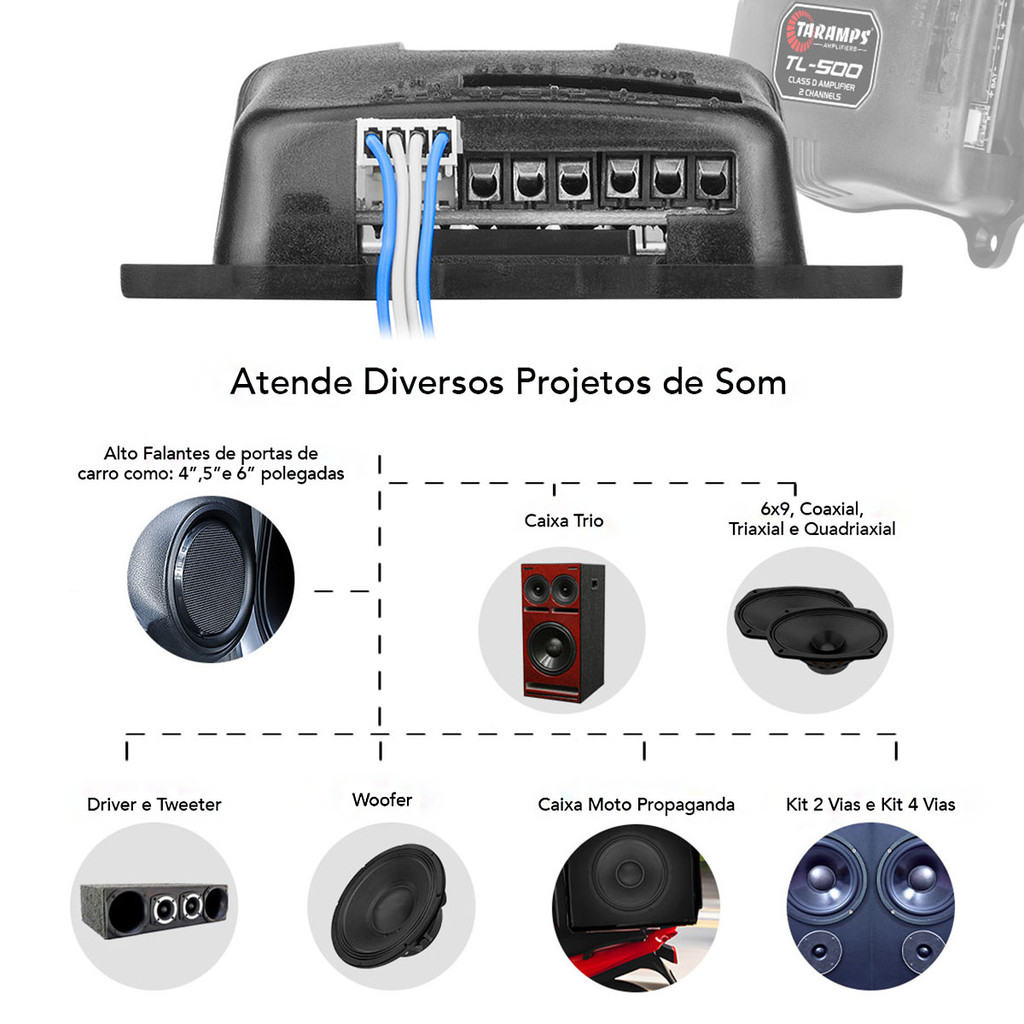 Módulo Amplificador Taramps TL 500 2 Canais 45w 2 Ohms Som Automotivo