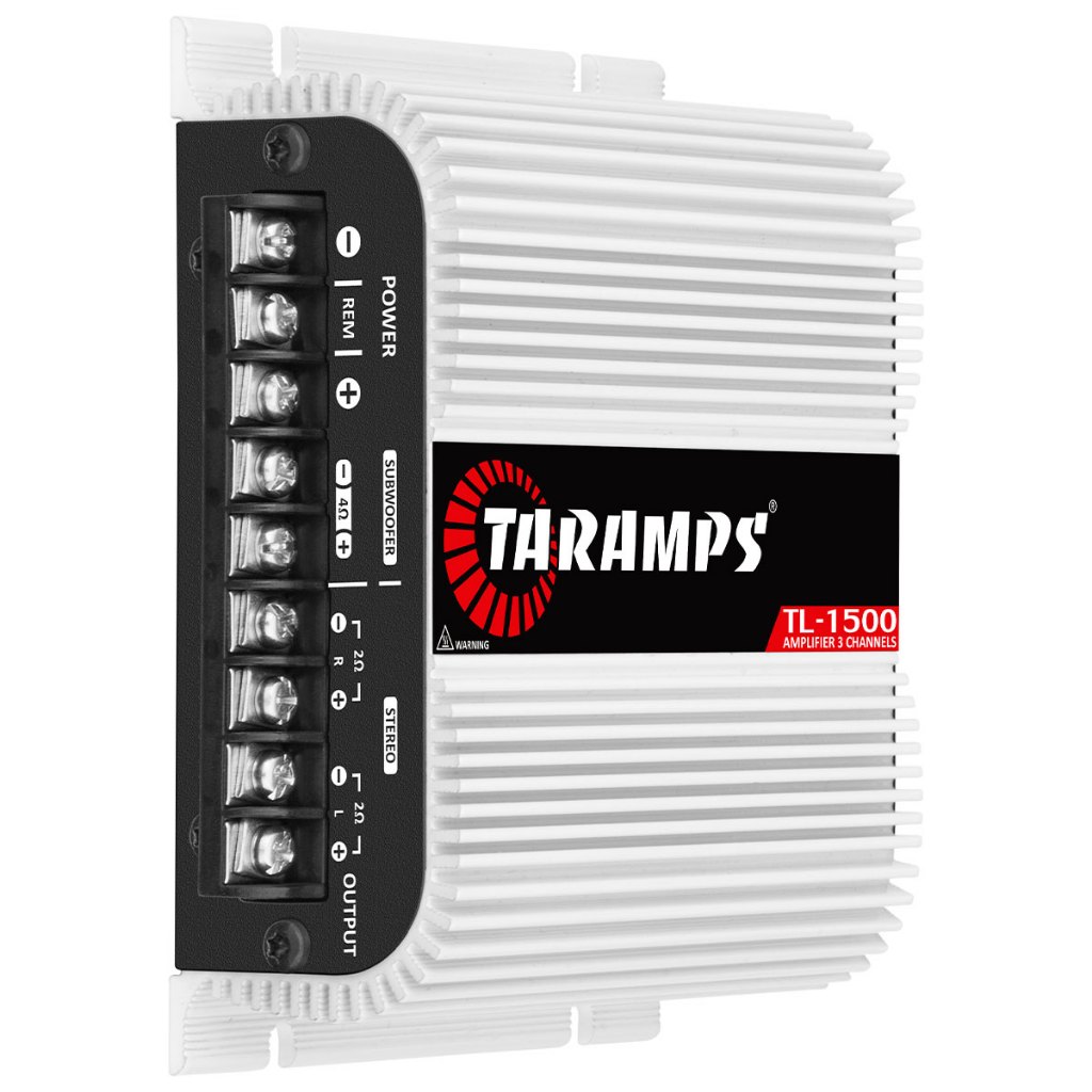 Bem vindo(a) a E-zee Shop! Leia atentamente a descrição e ficha técnica do produto. Se ainda surgir alguma dúvida entre em contato com a gente através do Chat que iremos te ajudar :) _______________________________________ Módulo Amplificador Taramps TL1500 2 Canais 95W Rms 2 Ohms O módulo amplificador TL 1500 da Taramps foi desenvolvido para sistemas de som automotivo de 3 canais, sendo eles: • 2 canais stereo (L/R) de 95 Watts RMS à 2 ohms cada, com filtro ativo de corte HPF em 90Hz para ligar os alto falantes das portas e tampão. • 1 canal de SUB de 200 Watts RMS à 4 ohms, para ligar a caixas de subgrave. Este canal é resultante da soma dos canais (L/R) com filtro ativo de corte LPF em 90Hz. O TL 1500 é um produto stereo, com potência total de 390 Watts RMS e FULL RANGE tocando todas as frequências na medida certa para você. ESPECIFICAÇÕES • Classe de Operação: Classe D • Número de Canais: 03 • Potência Máxima: - @ 13,8 VDC - 2 OHMS 2 x 95W RMS (ESTÉREO) - @ 13,8 VDC - 4 OHMS 1 x 200W RMS (SUB) • Sensibilidade de Entrada: - Entrada RCA = 320mV - Entrada de fio = 6V • Relação de Sinal/Ruído: >90dB • Resposta de Frequência: - Saída de Sub: 15Hz a 90Hz com corte de frequência ativo (12dB/8ª) - Saídas Estéreo L/R: 90Hz a 30kHz com corte de frequência ativo (12dB/8ª) • Bass Boost: Ajustável de 0 a 10dB @ 50Hz • Eficiência: 90% • Impedância de Entrada: - 10K Ohms (RCA) - 1K Ohms (FIO) • Sistema de Proteção: Curto na saída - proteção térmica • Tensão de Alimentação Mínima: 9VDC • Tensão de Alimentação Máxima: 16VDC • Consumo em Repouso: 0,75A • Consumo Máximo Musical: 17,5A • Consumo Máximo em Sinal Senoidal: 35A • Dimensões (LxAxP): 13,8 x 4,9 x 12,1 cm • Peso: 600g CONTEÚDO DA EMBALAGEM • 01 Módulo Amplificador Taramps • Manual