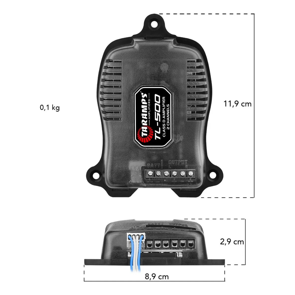 Kit Amplificador Taramps TL500 + Cabo RCA Ouro 1m A Taramps apresenta o módulo amplificador TL 500. É estéreo, com potência máxima de 90 Watts RMS com impedância de 2 Ohms e com 2 canais de 45 Watts RMS. O TL 500 possui tecnologia inovadora para sistemas de som automotivo com acionamento automático por nível de áudio (sistema A.R.T.) para melhorar seu sistema de som original e tocar para alto falantes de porta. Acompanha neste kit o Cabo RCA Ouro 1m, ideal para instalações de som automotivo que exigem qualidade de sinal, resistência e acabamento confiável. Com 1 metro de comprimento, é indicado para ligações curtas e organizadas, evitando excesso de cabos no projeto. APLICAÇÃO • Sistemas de som automotivo que necessitam de amplificação para alto-falantes de porta. • Ideal para melhorar o sistema de som original do veículo com instalação simples. • Conexões curtas e organizadas entre o amplificador e a fonte de áudio. CARACTERÍSTICAS PRINCIPAIS DO AMPLIFICADOR • Número de Canais: 02 • Potência RMS: 2 x 45W RMS @ 2 Ohms (14,4 VDC) • Tecnologia A.R.T. com acionamento automático por nível de áudio • Resposta de Frequência: 80Hz ~ 40KHz • Sistema de Proteção: Curto na saída e proteção térmica • Design compacto e leve • Tensão de Alimentação: 8 a 16 VDC CARACTERÍSTICAS PRINCIPAIS DO CABO • Comprimento de 1 metro para ligações curtas e organizadas • Condutores em cobre para boa condução do áudio e menor perda de sinal • Capa em PVC que protege contra calor, desgaste e agentes externos • Plugs em latão com banho de zinco amarelo para conexões firmes e resistência à corrosão • Capacidade para até 100W, ideal para ligações de baixa potência ESPECIFICAÇÕES TÉCNICAS DO AMPLIFICADOR • Modelo: TL 500 • Número de Canais: 02 • Potência RMS - 2 Ohms 14,4 VDC: 2 x 45W RMS • Potência Máxima: 90W RMS (Stereo 2 Ohms) • Impedância de Entrada: 1K Ohm • Impedância de Saída: 2 Ohms • Resposta de Frequência (-3dB): 80Hz ~ 40KHz • Tensão de Alimentação: 8 a 16 VDC • Consumo a Máxima Potência (Musical): 3,8A • Consumo a Máxima Potência (Senoidal): 7,6A • Sistema de Proteção: Curto na saída e proteção térmica • Cor: Preto • Dimensões (L x A x P): 8,9 x 2,9 x 11,9 cm • Peso: 100g ESPECIFICAÇÕES TÉCNICAS DO CABO • Comprimento: 1 metro • Potência máxima: 100W • Cor: Preto • Material dos condutores: Cobre • Material dos plugs: Latão com banho de zinco amarelo • Material da capa: PVC VANTAGENS DO KIT • Solução completa para amplificação com cabo incluso • Amplificador compacto com tecnologia A.R.T. para acionamento automático • Cabo de qualidade com boa condução e resistência à corrosão • Instalação prática e organizada • Produtos com qualidade Taramps e acessórios de primeira linha ORIENTAÇÃO PARA INSTALAÇÃO • Conecte o cabo RCA firmemente às entradas correspondentes do amplificador e da fonte de áudio • Utilize em ligações curtas para evitar perda de sinal • Evite dobras acentuadas no cabo e contato com fontes de calor • Siga as orientações do manual para instalação correta do amplificador CONTEÚDO DA EMBALAGEM • 01 Módulo Amplificador Taramps TL500 • 01 Cabo RCA Ouro 1m • Manual do Amplificador Produto novo, original e lacrado, acompanha nota fiscal e garantia de fábrica de 12 meses. Imagens meramente ilustrativas.
