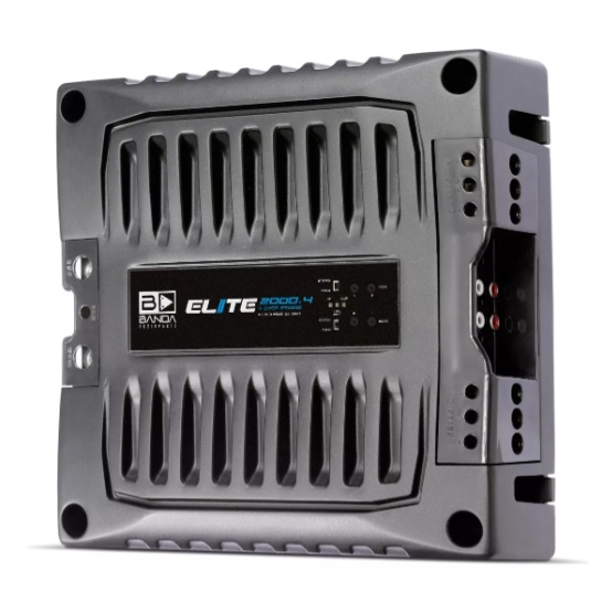 * MODELO NOVO * Com potentes 2000 Watts RMS em 4 canais e impedância 2 Ohms por canal, os amplificadores da nova linha ELITE são muito versáteis, possibilitando diversos tipos de instalação com um único amplificador. Graças ao seu alcance FULL-RANGE de resposta de frequência, o ELITE se encaixa em qualquer projeto com: Subwoofers, Woofers, Médio-Grave, Cornetas ou Super Tweeters, sendo possível também, fazer ligações em 4, 3 ou 2 canais, quando utilizado em conexões Bridge. Com o ELITE 2000.4 é possível conectar um sistema de som de médio porte por completo, desfrutando da qualidade de áudio já consagrada pela BANDA AUDIOPARTS além de e um baixo consumo. Especificações Técnicas - Potência Máxima 14,4v @ 2 Ohms: 4 x 600 WRMS - Potência Máxima 14,4v @ 4 Ohms: 4 x 510 WRMS - Potência Máxima 14,4v Bridge @ 4 Ohms: 2 x 1200 WRMS - Potência Máxima 12,6v @ 2 Ohms: 4 x 500 WRMS - Potência Máxima 12,6v @ 4 Ohms: 4 x 400 WRMS - Potência Máxima 12,6v Bridge @ 4 Ohms: 2 x 1000 WRMS - Eficiência @ 4 Ohms: 82% - Eficiência @ 2 Ohms: 78% - Tensão de Entrada: 9 - 15V - Impedância de Entrada: 100K Ohms - THD+N: <1% - Sensibilidade de Entrada: 150mV - 4V - Relação Sinal Ruído: 85dB - Resposta em Frequência: 20 a 25kHz (-3dBs) - HPF (Subsônico): 80Hz @ 12dB/oitava Linkwitz-Riley - LPF (Crossover): 80Hz @ 12dB/oitava Linkwitz-Riley - Fusível Recomendado: 100 A - Corrente de Repouso: 1,5 A - Corrente Máxima (sinal musical): 105 A - Cabos de Alimentação (mín. recomendado): 21mm / 5 AWG - Cabos de Saída (mín. recomendado): 2 x 2,5mm / 2 x 14 AWG - Peso (Kg): 3,7 - Altura (mm): 63 - Largura (mm): 225 - Profundidade (mm): 236