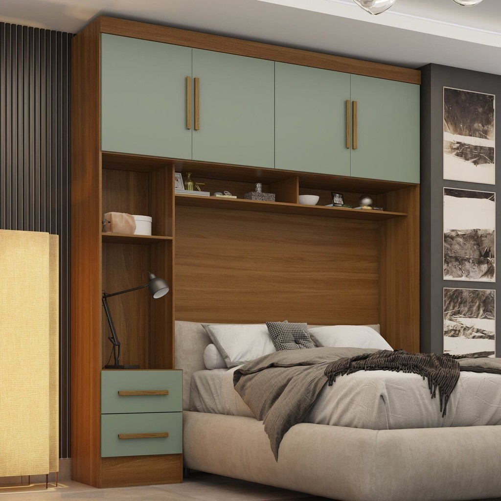 Módulo Closet Smart Aéreo com Criado 2 Gavetas com Maleiro Expresso Movéis Cinamom/Verde