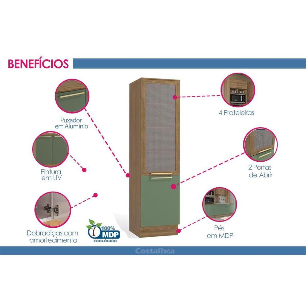 Módulo Cozinha Kappesberg Botanic Paneleiro Botanic M626 c/ 2 Portas c/ 1 Tela 50cm Nogueira/Verde Oliva - Kappesberg