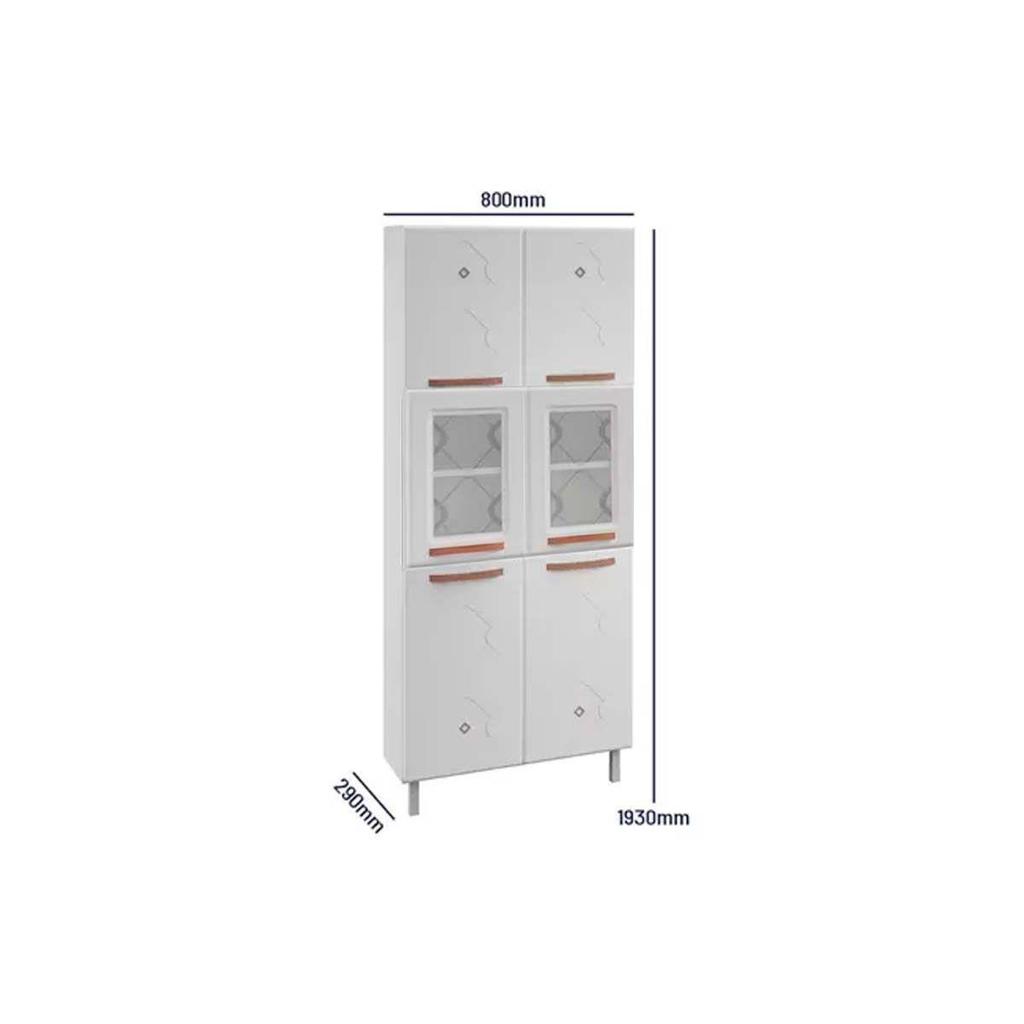 Módulo Cozinha Telasul Mirage New Paneleiro Aço 6 Portas c/2Vidro 80cm Branco/Preto-Telasul