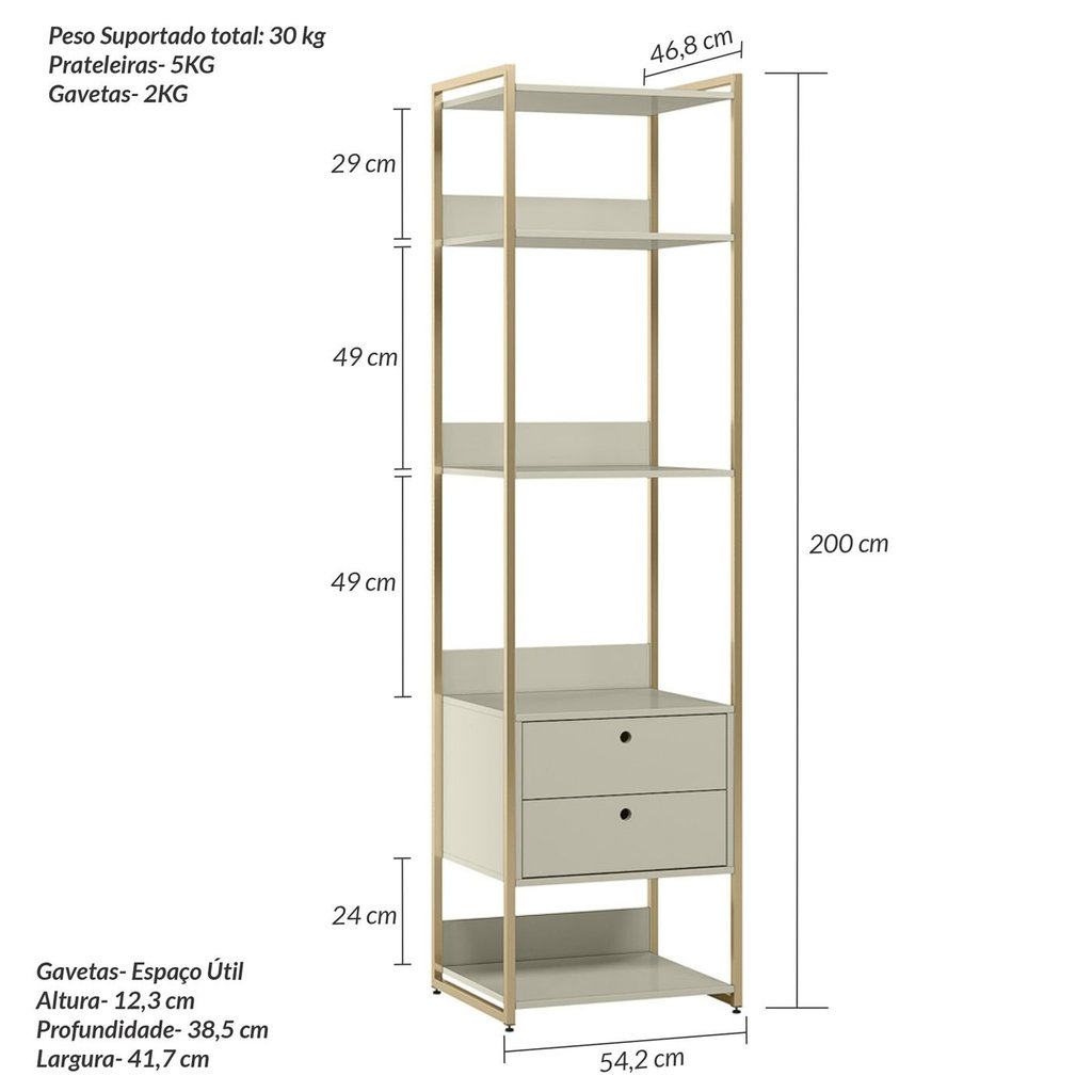 Modulo Estante Industrial 54cm com prateleiras 2 Gavetas - Estrutura Metálica