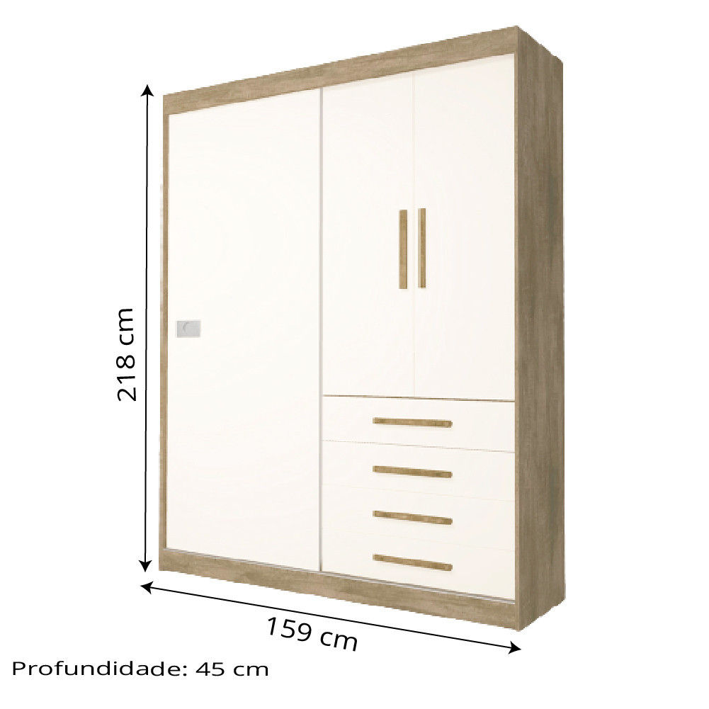 Modulo Georgia Guarda-Roupas 3 Portas 4 Gavetas Jequitibá/Off White J&A