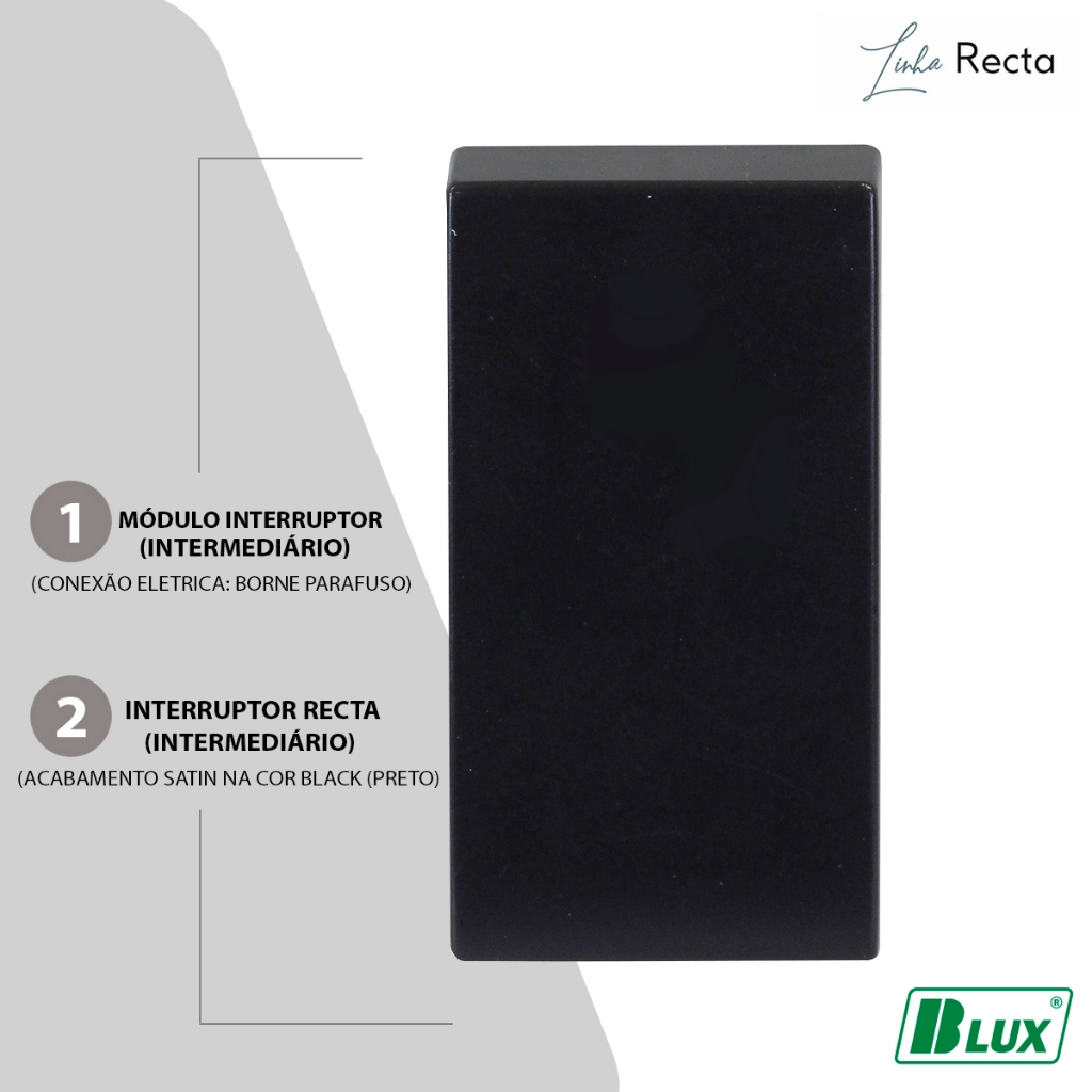 Módulo Interruptor De Luz Intermediário 250V 10A Preto Black Satin Recta 12505-9 - BLux
