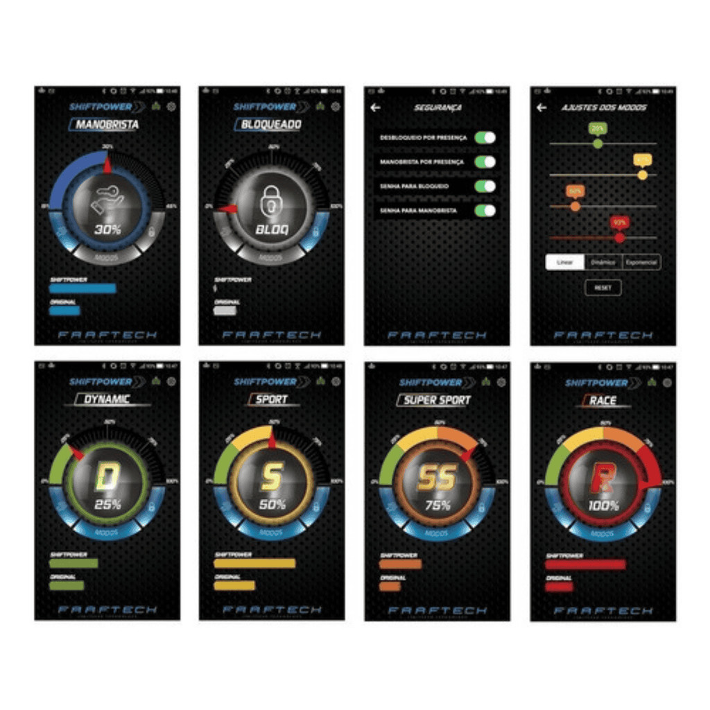 MÓDULO DE ACELERAÇÃO FAAFTECH SHIFTPOWER COM APP BLUETOOTH MODELO: FT-SP18+ APLICAÇÕES: - Audi A1 2015 até 2019 - Audi A3 2007 até 2024 - Audi A4 2009 até 2015 - Audi A5 2007 até 2016 - Audi A6 2008 até 2018 - Audi A7 2011 até 2018 - Audi A8 2010 até 2019 - Audi Q3 2009 até 2024 - Audi Q5 2008 até 2017 - Audi R8 2006 até 2023 - Audi RS 3 2011 até 2023 - Audi RS 4 2008 até 2016 - Audi RS 5 2007 até 2016 - Audi RS 6 2008 até 2018 - Audi RS 7 2011 até 2020 - Audi RS Q3 2012 até 2023 - Audi S3 2004 até 2022 - Audi S4 2008 até 2016 - Audi S5 2007 até 2016 - Audi S7 2011 até 2017 - Audi S8 2011 até 2018 - Audi SQ5 2008 até 2017 - Audi TT 2006 até 2019 - Audi TTRS 2010 até 2019 - Porsche 718 2017 até 2023 - Porsche 911 2005 até 2021 - Porsche Boxster 2005 até 2023 - Porsche Cayman 2006 até 2022 - Porsche Macan 2014 até 2023 - Porsche Panamera 2009 até 2022 - Volkswagen Arteon 2018 até 2023 - Volkswagen Atlas 2018 até 2024 - Volkswagen Beetle 2011 até 2019 - Volkswagen CC 2012 até 2015 - Volkswagen EOS 2007 até 2016 - Volkswagen Fusca 2012 até 2016 - Volkswagen Golf 2014 até 2020 - Volkswagen Jetta 2005 até 2024 - Volkswagen Nivus 2021 até 2025 - Volkswagen Passat 2005 até 2021 - Volkswagen Polo 2018 até 2025 - Volkswagen Rabbit 2006 até 2009 - Volkswagen T-Cross 2019 até 2025 - Volkswagen Taos 2022 até 2024 - Volkswagen Tiguan 2007 até 2024 - Volkswagen Up 2011 até 2021 - Volkswagen Virtus 2018 até 2025 - Volkswagen 11180 2017 até 2024 - Volkswagen 11210 2024 - Volkswagen 13180 2022 até 2023 - Volkswagen 17210 2023 até 2025 - Volkswagen 18210 2024 - Volkswagen 18260 2024 até 2025 - Volkswagen 25460 2023 - Volkswagen 27260 2024 - Volkswagen 28460 2023 - Volkswagen 29520 2022 até 2023 - Volkswagen 33460 2021 até 2023 - Volkswagen 6160 2019 até 2020 - Volkswagen 8160 2021 até 2022 - Volkswagen 9170 2019 até 2023 - Volkswagen 9180 2023 até 2024 - Volkswagen Constellation 26.260 2023 até 2024 - Volkswagen e-Delivery 11 2023 - Volkswagen e-Delivery 14 2023 - Volkswagen Express DRC 2021 até 2023 O modo ECO permite atenuar a resposta de aceleração, possibilitando maximizar a economia de combustível. Com respostas de aceleração mais suaves, esse modo atende tanto quem busca economia, quanto quem precisa diminuir a resposta de aceleração. O Shiftpower é um módulo de performance que mudará a sua experiência ao dirigir, eliminando o atraso de aceleração nos modos de condução mais esportivos, com diversos modos de condução e segurança. Para permitir o máximo de personalização em sua performance, agora com bluetooth integrado e aplicativo disponível para IOS e Android. CARACTERÍSTICAS - Resposta imediata de aceleração - Maior prazer ao dirigir - Ultrapassagens mais seguras - Direção mais esportiva - Fácil instalação (conecte e acelere sem nenhuma programação) - Plug and play (Não altera a originalidade do carro) - Disponível para mais de 200 modelos APLICATIVO SHIFTPOWER - Total personalização com mais de 300 mapas de performance.¿ - Opção de desativação dos modos Manobrista e Bloqueio por presença. - Ajuste automático ou manual da iluminação do botão para os modos dia e noite. - Configuração de limites para o modo manobrista. NOVO DESIGN Nova central com bluetooh integrado, controle por aplicativo e dimensões ultra compactas. Novo botão ergonômico com acabamento sofisticado e visual moderno. Cabos discretos, resistentes e modernos com proteção por malha de nylon expansiva padrão automotivo e conectores do pedal impermeáveis Ip67. MODOS DE CONDUÇÃO ECO - Respostas de aceleração mais lentas que o original do veículo. DYNAMIC - Resposta suave, ganho confortável de aceleração. Indicado para uso na cidade. SPORT - Resposta média-rápida. Indicado para uso na cidade. SUPER SPORT - Resposta rápida com tocada mais esportiva. Indicado para uso em rodovias. RACE - Resposta extremamente agressiva. Indicado para uso em rodovias, ideal para ultrapassagens rápidas. MODOS DE SEGURANÇA MODO MANOBRISTA - O modo manobrista limita o pedal do acelerador em 30% podendo ser ajustado entre 15 a 45% através do aplicativo, pode ser ativado tanto pelo App quanto pelo botão. MODO BLOQUEIO - O modo bloqueio funciona como um dispositivo Anti-Furto anulando a resposta total do acelerador. Também pode ser ativado pelo aplicativo e pelo botão. INSTALAÇÃO Sua instalação é realizada através de conector original do acelerador eletrônico do veículo, de forma super simples, mantendo toda a originalidade e garantia do carro. Após a conexão dos plugs o produto já estará em funcionamento pelo botão do display e não é necessária nenhuma configuração adicional. 📦 O que vem na embalagem:: - 01 Interface Faaftech - Ft-Sp18+ - 01 Botão Seletor - 01 Chicote de 🛠️ Instalação - 02 Abraçadeiras de 15cm - Manual e Certificado de Garantia ⚠️ ⚠️ Importante: - 🛡️ Garantia de 3 anos - 🖼️ Fotos meramente ilustrativas - Recomendamos que a instalação seja realizada por um profissional especializado, e não nos responsabilizamos pelo mau uso do produto.