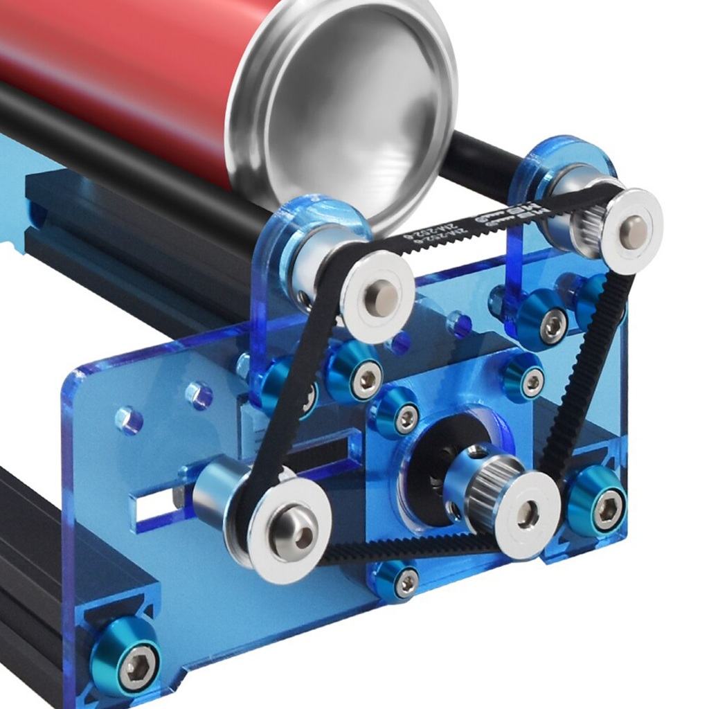 Features: Y-axis Roller Engraving Module is used to engrave cylindrical objects such as engraving text and patterns on cans, meets the engraving needs of different angles. Engraving machine rotary module. Rotary engraving for laser engraving cylindrical objects. The placement width is adjustable. Laser engraving machine accessories. Specifications: Material: Acrylic & Aluminum Alloy Color: Blue Dimensões do produto: 13*21* 8.3cm Notes: Due to the different monitor and light effect, the actual color of the item might be slightly different from the color showed on the pictures. Thank you! Please allow 1-3cm measuring deviation due to manual measurement. Packing List: Aluminum Alloy Gasket M3 * 4 Aluminum Alloy Gasket M4 * 8 Aluminum Alloy Gasket M5 * 4 Motor Side Plate * 1 Side Plate * 1 Timing Pulley Fixed Plate * 4 20-Tooth Timing Pulley (Inner Hole 5) * 1 20-Tooth Timing Pulley (Inner Hole 6) * 2 Idler Gear * 1 2020 Profile (L200mm) * 2 Motor Wire * 3 42 Stepping Motor * 1 Flange Bearing * 4 Stop Collar * 2 Rotating Roller * 2 Rubber Timing Belt * 1 Toolkit * 1 Screws and Nuts * 1