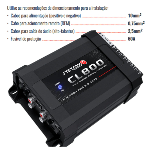 Módulo Stetsom CL800 Amplificador Stereo Full Range 800W RMS em 2 Ohms