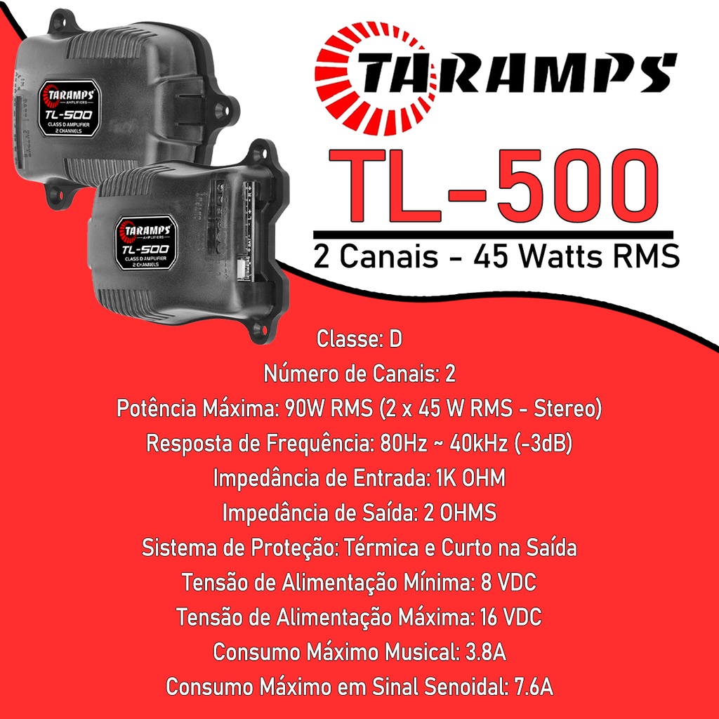 Módulo Taramps TL 500 2 Canais 90W 2 Ohms Amplificador de Som Automotivo