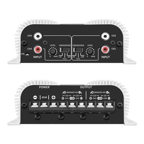 # OESTESOM # Módulo Taramps Ts400 + Cabo Rca Stetsom 5 M + St 6000 - Módulo Amplificador Taramps 4 Canais Ts-400x4 400 W Rms 2 Ohms Número de Canais - 4 Potência Máx. @ 13,8 VDC - 2 OHMS - 400 W RMS (4 x 100W RMS) Potência Máx. @ 13,8 VDC - 4 OHMS - 252 W RMS (4 x 63W RMS) Potência Máx. em Bridged @ 13,8 VDC - 4 OHMS - 400W RMS (2 x 200W RMS) Sensibilidade de Entrada: 160mV (Vol = máx.) Distorção Harmônica Total (THD): 0,05% Relação Sinal/Ruido: >90dB Fator de Amortecimento: >300 Resposta de Frequência (Full Range): 20Hz a 30kHz (-1dB) Crossover H.P.F (Filtro Passa Alta): 100Hz(-12dB/8ª) L.P.F (Filtro Passa Baixa): 100Hz(-12dB/8ª) Eficiência do Estágio De Saída: >90% Impedância de Entrada: 22K OHMS Sistema de Proteção - Térmica e Curto na Saída Tensão de Alimentação Mínima: 8VDC Tensão de Alimentação Máxima: 16VDC Consumo em Repouso: 1 Amp. Consumo Máximo Musical @ 13,8VDC: 19 Amp. Consumo Máximo Em Sinal Senoidal (1kHz) 13,8VDC: 38 Amp. Dimensões (LxAxP): 134 x 42 x 203mm Peso: 0,89Kg - Cabo RCA Stetsom 5 Metros Dupla Blindagem Profissional Prata - Adaptador RCA ST6000 REMOTE OESTESOM A SUA MELHOR LOJA NA INTERNET!