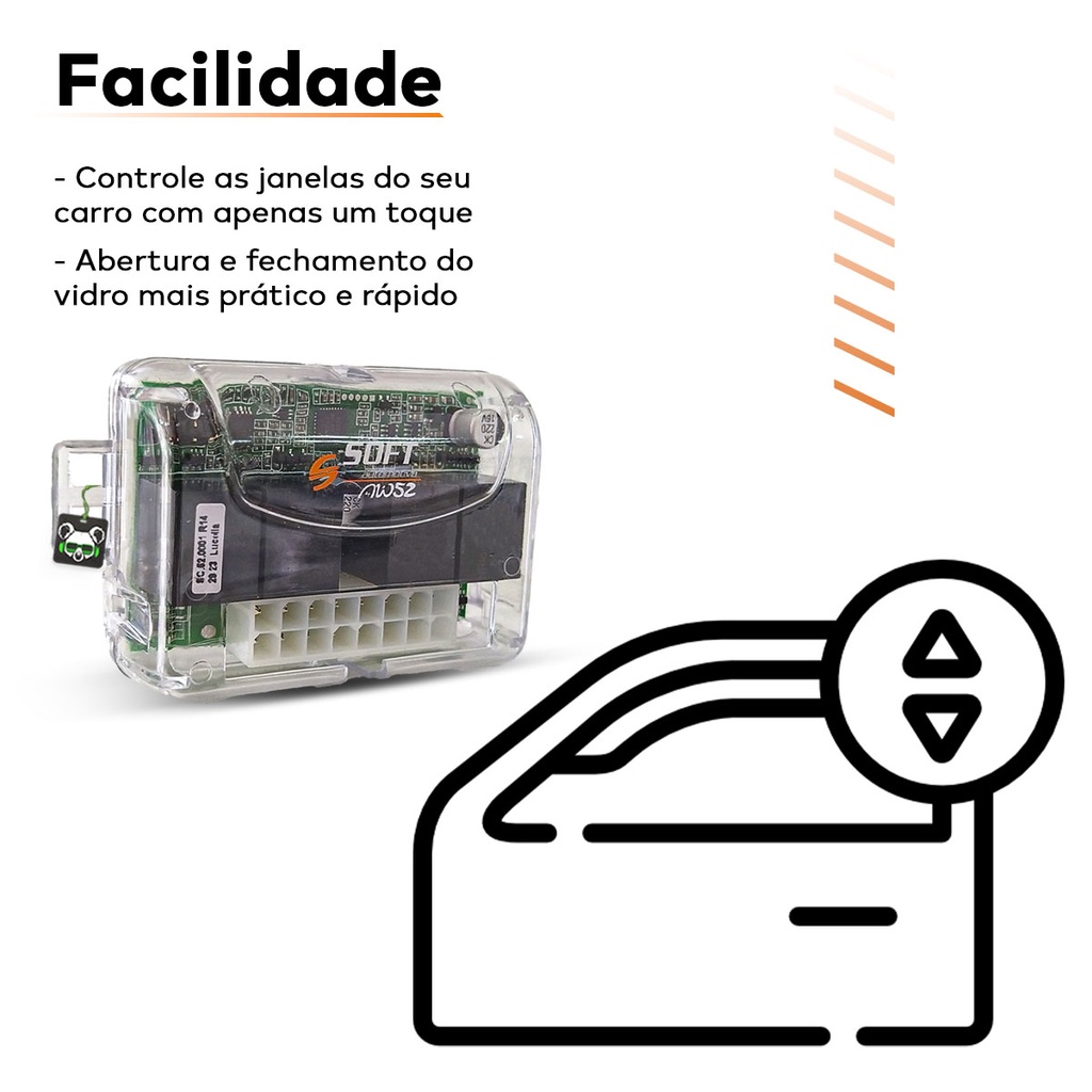 Módulo Vidro Elétrico Universal AW 52 Soft para 2 Vidros Antiesmagamento, Personalização, Automação