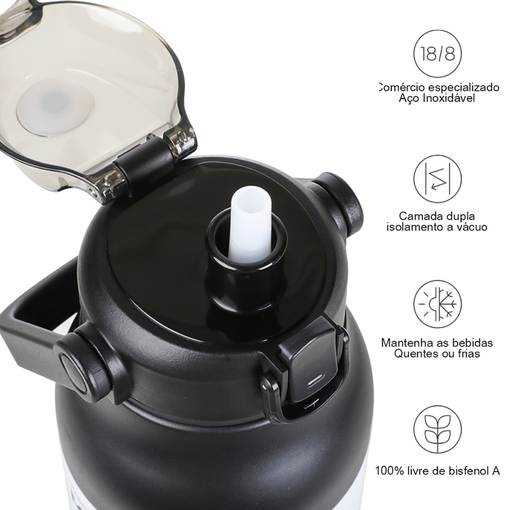 Marca: MODUS Design exclusivo: Com o botão One Touch Open and Close e a tampa higiênica flip top. A tampa e o canudo podem ser desmontados de forma independente e são fáceis de limpar. Material de alta qualidade: Feito de aço inoxidável e Sem BPA , a garrafa de água isolada a vácuo de metal significa melhor retenção de calor e frio e impede a condensação do lado de fora. À prova de vazamentos e fácil de beber: A tampa com trava à prova de vazamentos evita 100% de vazamentos. Além disso, a garrafa de água tem um canudo longo que chega até o fundo, para que você possa beber facilmente. Grande capacidade de 1700ML : a garrafa de água tem a capacidade de atender às suas necessidades diárias. Seja em uma caminhada ou em um acampamento, você pode aproveitá-la com confiança. Presente perfeito: esta garrafa de água é o melhor presente para sua família, mãe, pai, marido, esposa, amantes, vizinhos, amigos, colega de trabalho.