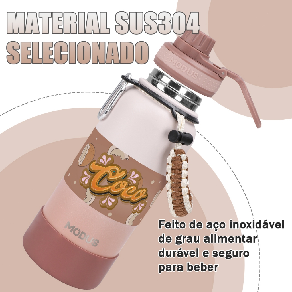MODUS Garrafa Térmica Aço Inoxidável Isolado de água 1000ml Com Alça Paracord Com Alça e Base Emborrachada