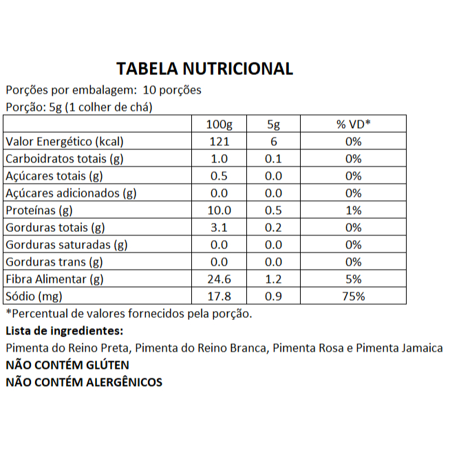 O Moedor Mix de Pimentas da BR Spices é o companheiro perfeito para ajudar a realçar o sabor das suas refeições com um mix de especiarias, de forma totalmente saudável devido aos ingredientes 100% naturais! Com a qualidade garantida da BR Spices, você terá sempre à mão um moedor para tempero versátil e de alta qualidade para elevar o sabor de seus pratos. Deixe o Moedor Mix de Pimentas da BR Spices fazer a diferença na sua culinária! INGREDIENTES Pimenta do Reino Preta, Pimenta do Reino Branca, Pimenta Rosa e Pimenta Jamaica INFORMAÇÕES SOBRE O PRODUTO Sem Glúten 0% glutamato Sem conservantes Sem corantes Ingredientes 100% naturais Frasco de Vidro com Tampa Moedora COMBINA COM Carne, porco, molhos, uso geral QUER DESCOBRIR DICAS DE OURO DO NOSSO CHEF FUNDADOR? Você sabia que o calor e a umidade são inimigos de temperos 100% naturais e puros? Por isso, aqui na BR Spices recomendamos alguns cuidados com os moedores para potencializar ainda mais a sua durabilidade! Armazene as embalagens em local fresco e livre de umidade. Ao utilizar, evite deixar o moedor em contato com calor e umidade do fogão. Uma dica é moer com a tampinha fechada e passar as especiarias da tampinha para a panela. CONHEÇA A BR SPICES Somos uma empresa jovem que nasce de uma cozinha moderna e acessível. Carregamos em nosso DNA a criatividade, alegria e o espírito empreendedor brasileiro. Boa cozinha para nós é a cozinha criativa, seja um prato prático e saudável para o dia a dia ou uma receita de domingo que faz viajar no tempo e na memória.