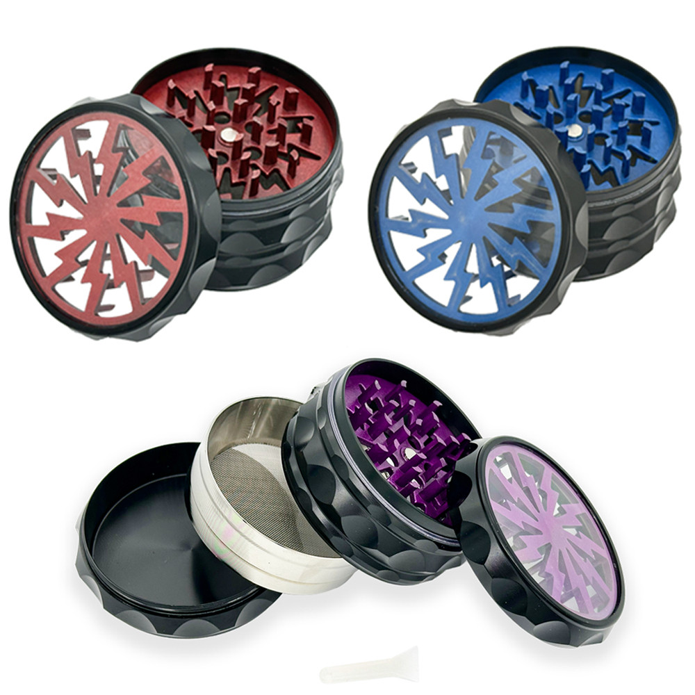 Moedor de Alta Qualidade de 63mm, 4 Camadas, Padrão de Relâmpago, Material de Liga de Zinco, Alimentos, Presente