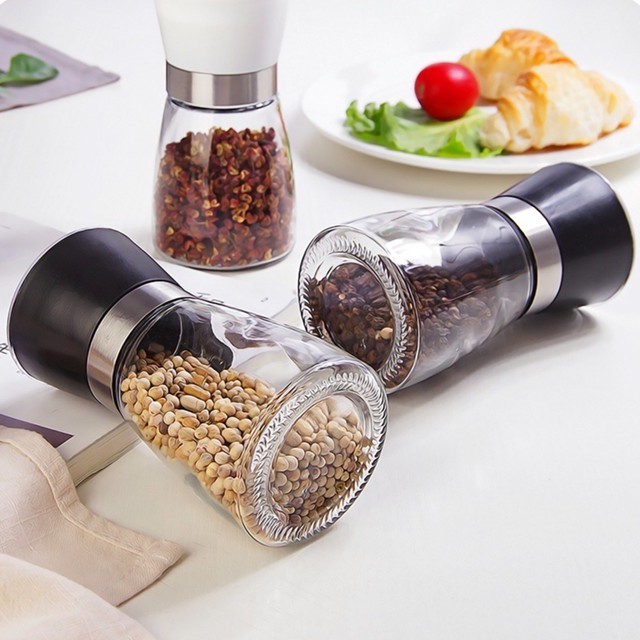 Moedor De Especiarias Em Vidro Detalhe Da Tampa Em Aço Inox Tampa Preta Moedor Sal Pimenta Premiun