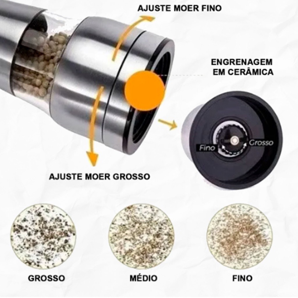 Moedor De Pimenta E Sal Grosso Gourmet Com Ajuste de Moagem Em Inox