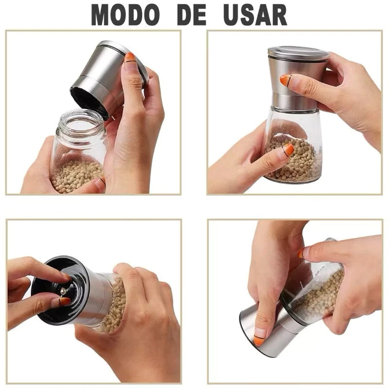 Moedor Manual De Pimenta Tempero Sal de Vidro e Inox