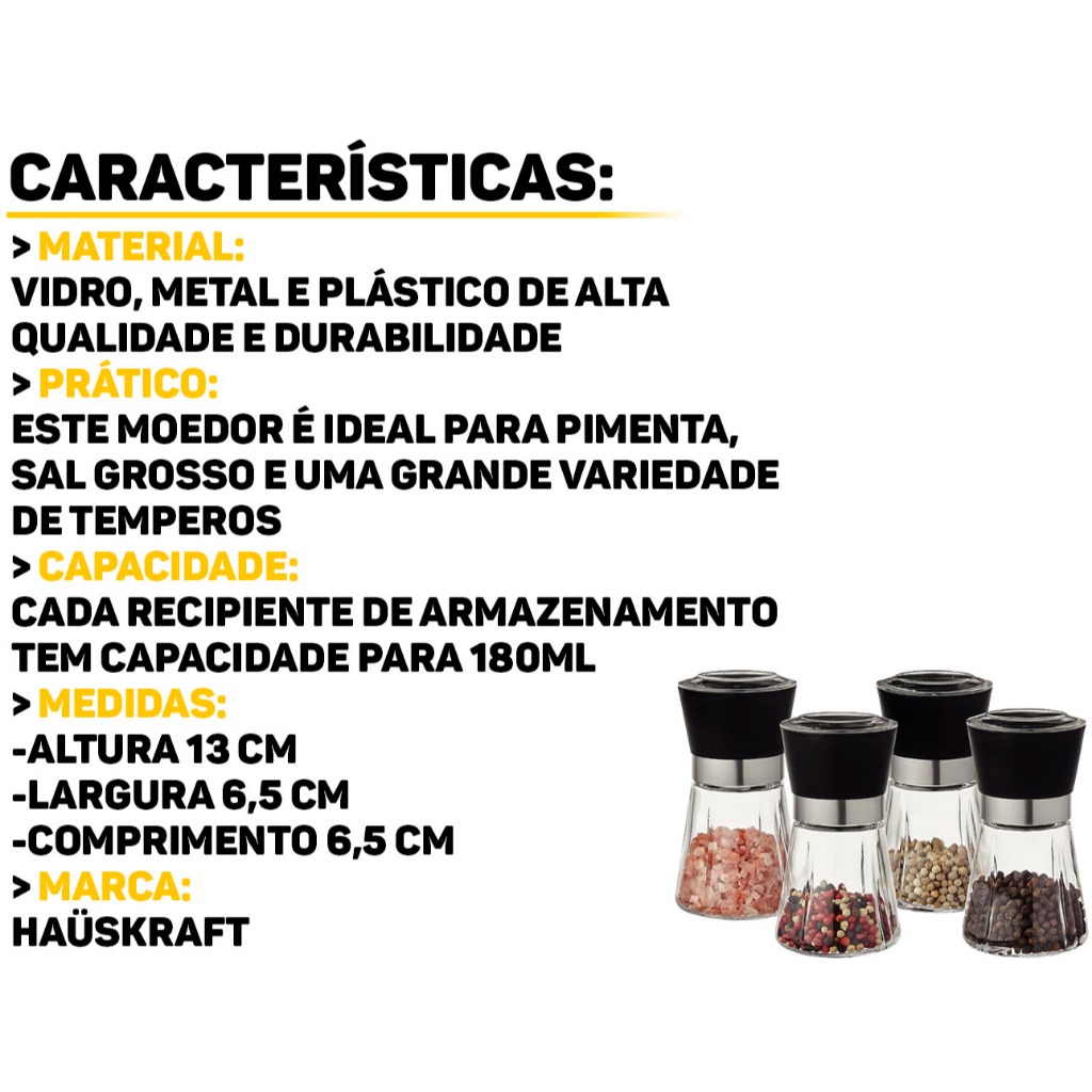 | Moedor Para Sal Pimenta Tempero Condimentos Especiarias Triturador ... este produto | R$ 27,31 | — | 4.4/5 | — |