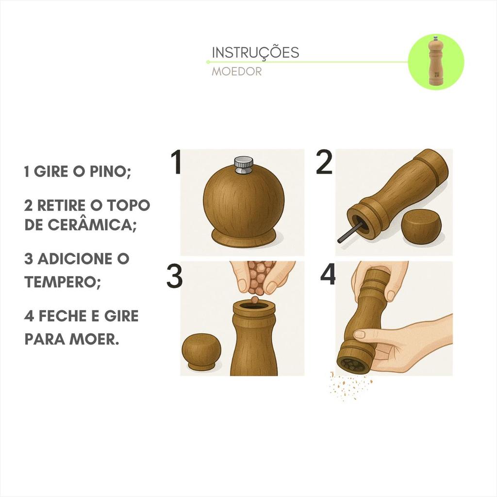 Eleve a experiência à mesa com mais sabor e sofisticação O Kit com 2 Moedores de Pimenta pequeno é o toque final perfeito para quem valoriza praticidade, elegância e tempero sempre fresco. Com design atemporal em madeira, eles combinam com qualquer estilo de cozinha, da mais clássica à gourmet moderna. O mecanismo de moagem garante pimentas moídas na hora, preservando aroma, textura e intensidade do sabor em cada preparo. Ideal para o uso diário ou para impressionar em ocasiões especiais. Além de funcionais, os moedores também decoram o ambiente, trazendo charme e requinte para a bancada, mesa posta ou espaço gourmet. Especificações Técnicas Material: Madeira, Aço Inox, Cerâmica e Acrilonitrila Butadieno Estireno (ABS) Dimensões: 4,8 x 15 cm Quantidade: Kit com 2 moedores pequeno Indicação de uso: Pimenta-do-reino e outros grãos secos Sistema de moagem: Manual, resistente e durável Perfeito para quem busca qualidade, estética e sabor em cada detalhe. *Imagens ilustrativas