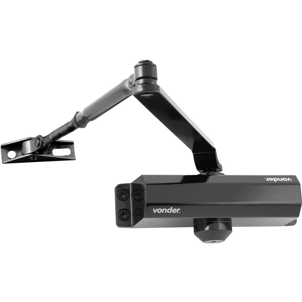 Mola Aérea Para Porta, Preta, Potência 2, Vonder Possui corpo em alumínio e duas válvulas para controle de fechamento, permitindo amortecimento. Permite instalação em portas abrindo para a direita e à esquerda (ângulo de abertura de 0° a 150°). Indicada para fechamento automático de portas de até 80 cm, com massa de 25 kg a 45 kg, acompanha manual de instalação. Especificações Técnicas: Potencia da mola aérea: Potência 2 Cor: Preta Largura das portas: Até 80 cm Massa aproximada (peso) (kg): 1,638 kg Conteúdo da Embalagem: 1 Mola aérea para porta.