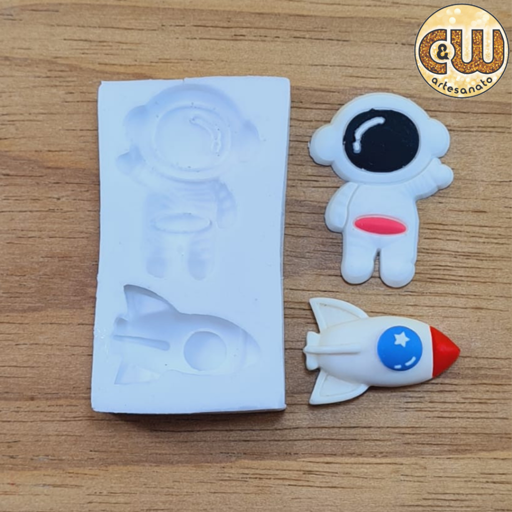 Molde de Silicone Astronauta e Foguete - Decoração, Confeitaria e Artesanato