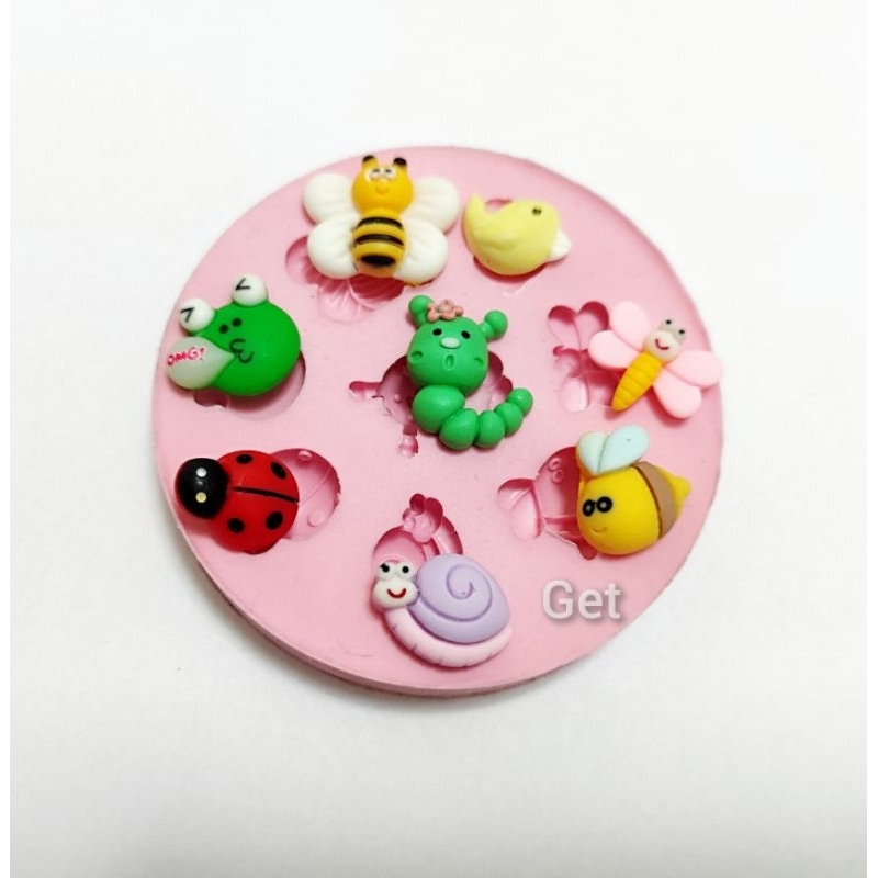 Molde de silicone ideal para trabalhos com modelagens em massas em geral. Medidas aproximadas: Sapo: 2,3 de diâmetro. Abelha com asas abertas: 2,7cm x 2,4cm. Abelha menor: 1,8 cm de diâmetro. Passarinho: 2,1cm x 1,9cm. Mariposa: 2,3 cm x 1,9 cm. Lagarta cute: 2,2 cm x 1,7 cm. Joaninha: 1,7 cm x 1,4 cm. Caracol: 2,4 cm de diâmetro.