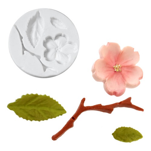 Molde de Silicone: Flor de Cerejeira Pasta Americana Bicuit Resina Artesanato Confeitaria