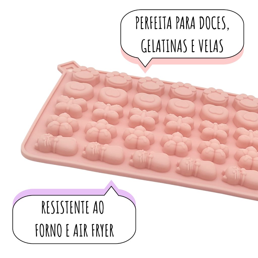 Molde de Silicone Gatinho e Borboleta 34 Cavidades Forma de Patinhas Goma Doce Chocolate