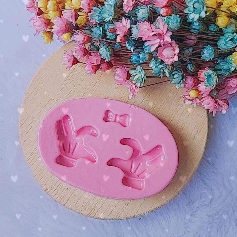 Molde Mão Mickey e Minnie Tamanho do molde: 7.6 cm Tamanho das peças: Aprox Mão 2.7 / Laço 1.5 cm Nossos Moldes são produzidos com o melhor Silicone do mercado. Por esse motivo os Moldes de Silicone da Donna Arteira são conhecidos por sua qualidade, durabilidade e elasticidade. Ideal para auxiliar em trabalhos de artesanato em Biscuit, Confeitaria, Resina, Velas, Gesso e etc.. Reutilizável e antiaderente. Não soltam resíduos. Fácil utilização e higienização. Não trabalhamos com pronta entrega, nossos moldes são produzidos sob encomenda.